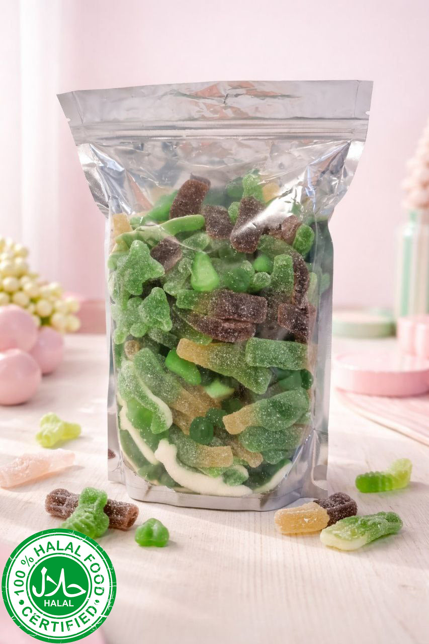 Süße grüne Versuchung für alle Naschkatzen! Dieses leuchtend grüne Bonbon-Highlight bringt Farbe und Geschmack in jeden Moment. Perfekt zum Naschen zwischendurch, zum Verschenken oder als farbenfrohe Ergänzung deiner Süßigkeitensammlung. Lass dich von diesem grünen Traum verführen und genieße jeden Bissen mit einem Lächeln!